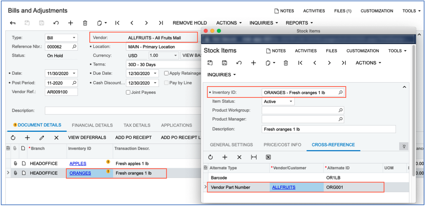 The improved feature has another benefit to auto-create new cross-reference. If the system cannot find an inventory ID associated with the specified alternate ID, the user can manually select the correct inventory ID for the record. After the recognized document converts into an AP document and it is saved, the system adds a ‘Vendor Part Number’ record for the alternate ID on the Cross-Reference tab of the Stock Items or Non-Stock Items form.